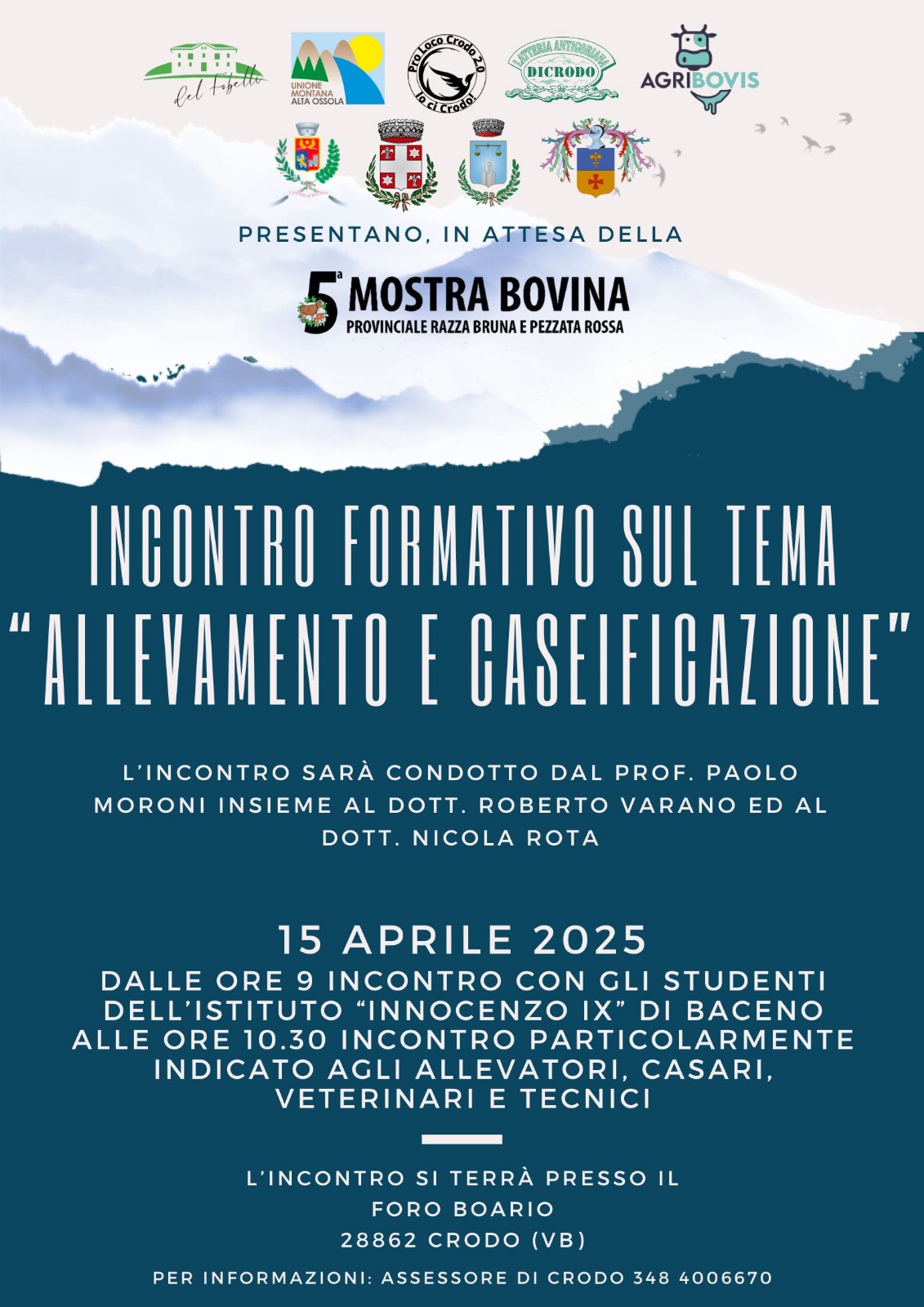 L'incontro sarà condotto dal prof Paolo Moroni insieme al dott. Varano e Rota il 15 aprile 2025 dalle ore 9 preso il Foro Boario di Crodo (VB)