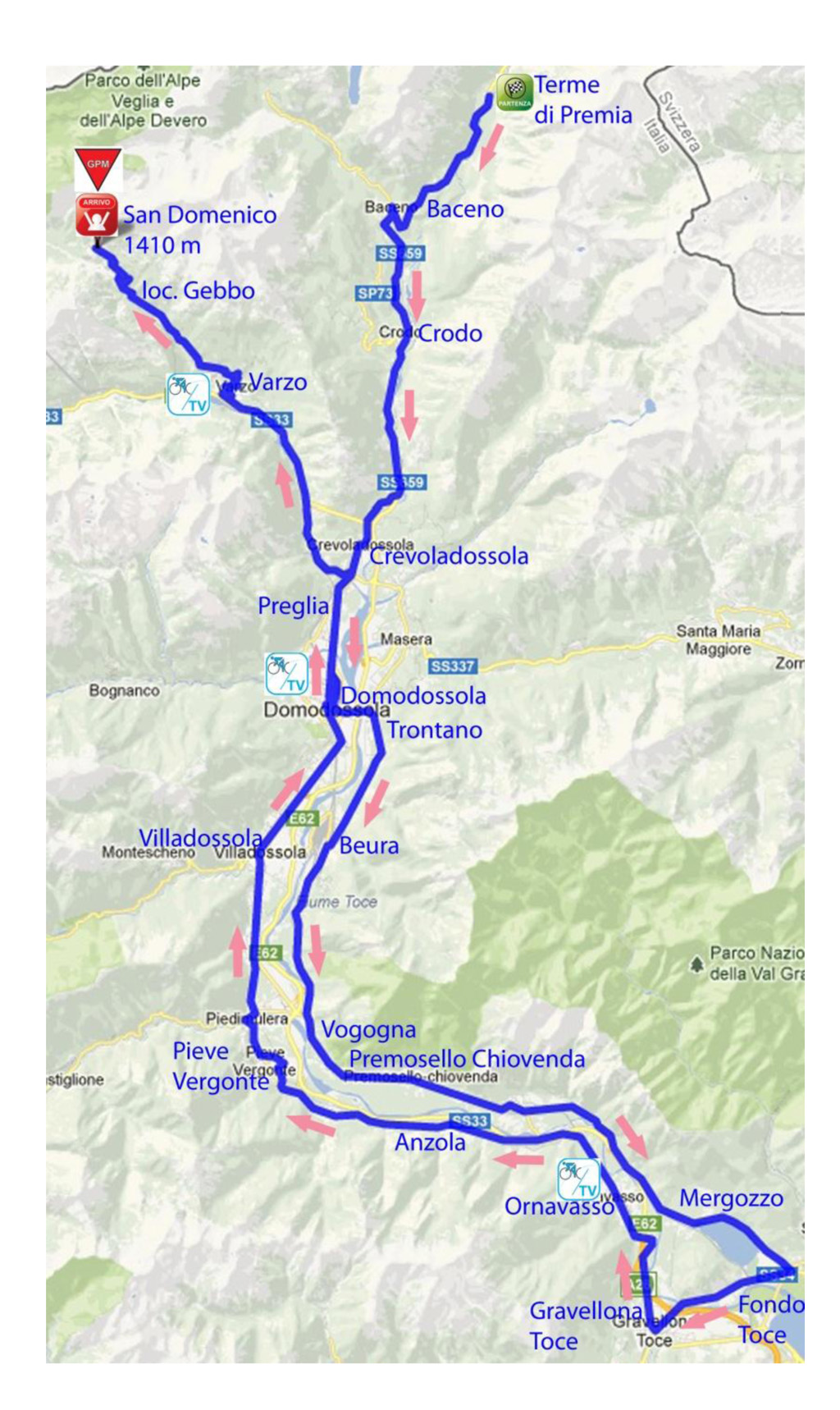 Partenza tappa Giro ciclistico d'Italia Femminile dalle Terme di Premia il 05 Luglio 2013 alle ore 12,30