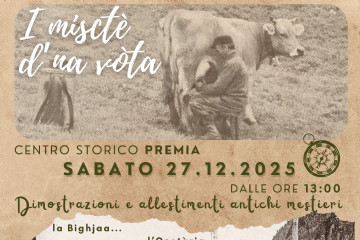 Sabato 27 dicembre 2025 dalle ore 13,00 nel centro storico di Premia, dimostrazione e allestimenti di antichi mestieri